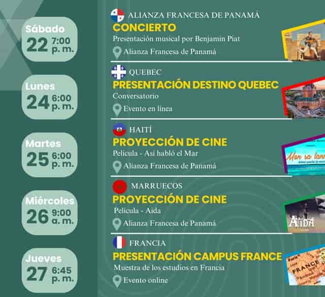 La Alianza Francesa de Panamá y la Embajada de Francia en Panamá se complacen en anunciar la celebración de la Francofonía 2025, que se llevará a cabo del 11 al 28 de marzo. Este evento anual destaca la riqueza y diversidad de la lengua francesa y las culturas francófonas alrededor del mundo.